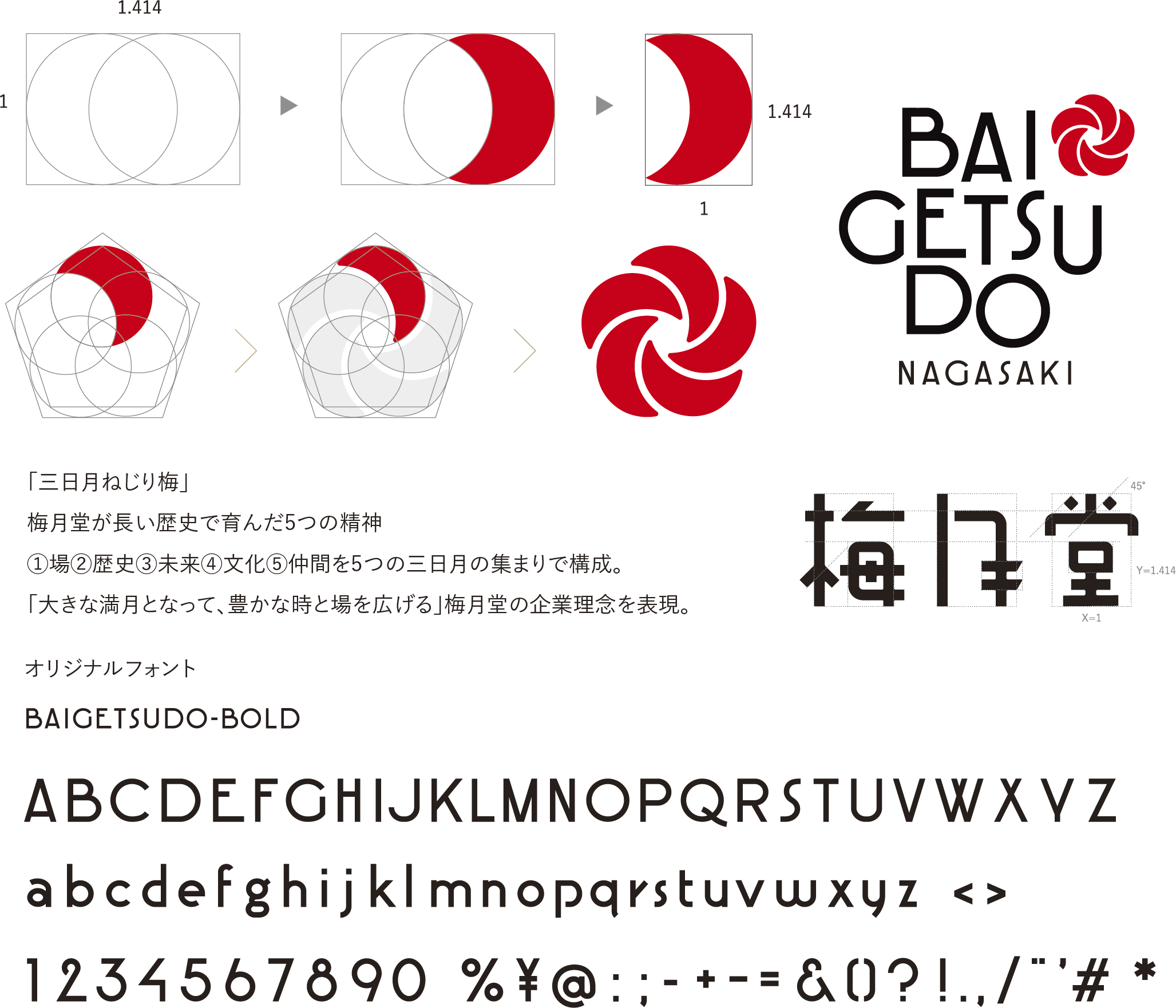このプロジェクトによって、ロゴ、タグライン、オリジナルフォントから成る、梅月堂の総合的なビジュアルアイデンティティが完成 。