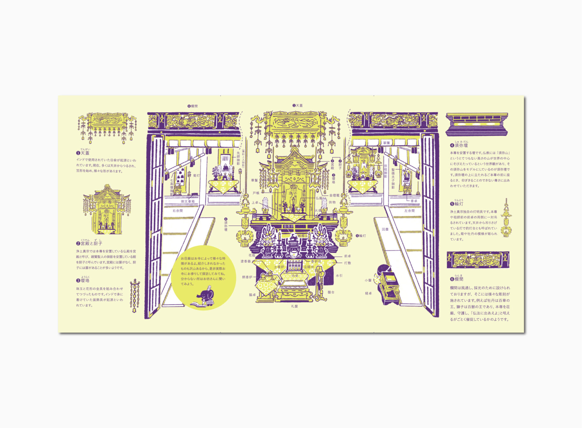 聴聞についての基礎的な案内、ご法座の流れや持ち物を紹介するページはもちろん、コゾーさんとテチョーさんというキャラクターが、全体を楽しくナビゲートします。