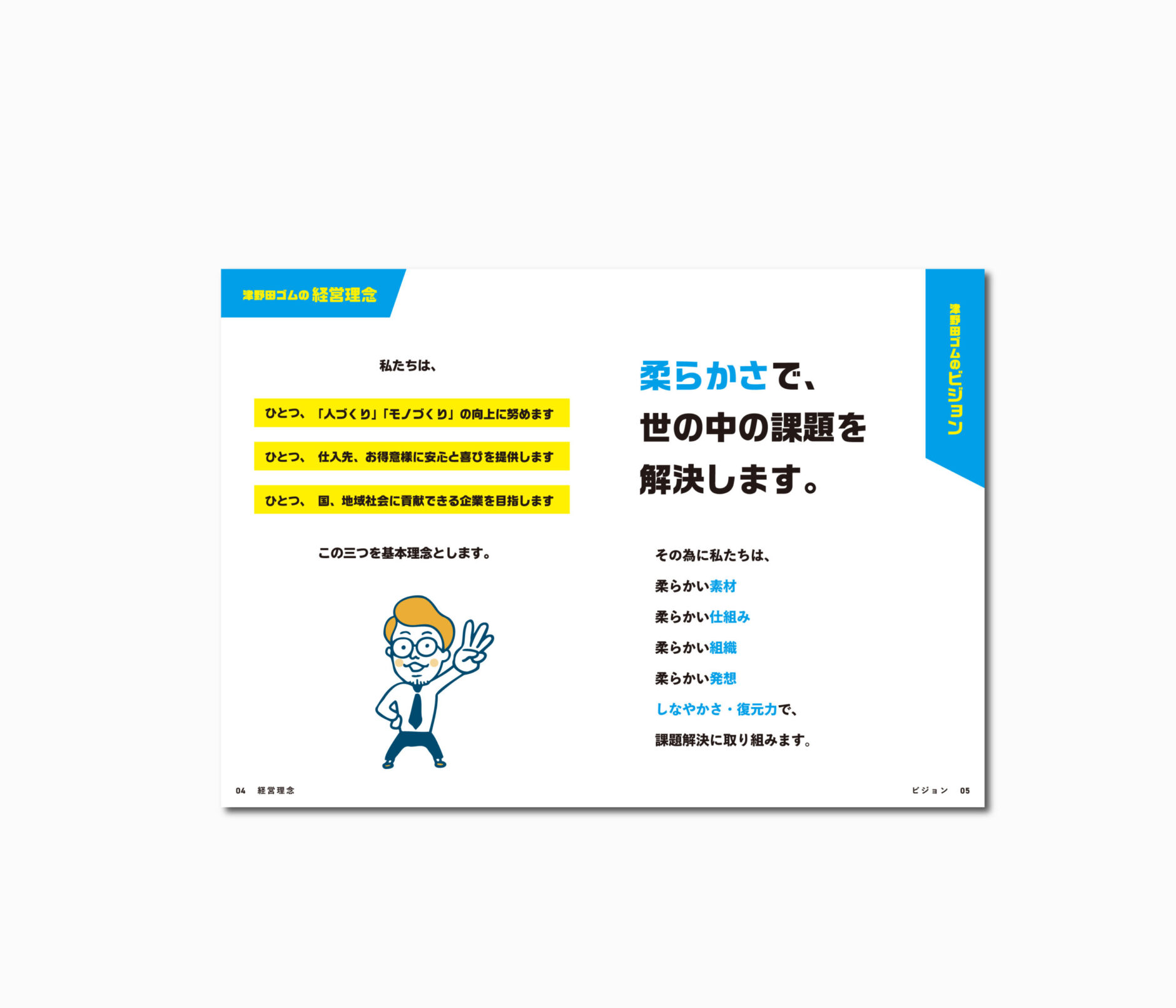 社内に理念と方針を浸透させるため、経営理念・行動指針・年度計画を一冊に再編集。全29ページの「CREDO BOOK/経営方針書」として、序章→ビジョン→行動基準→事業方針→指標へと“迷わない導線”に整理しました。会議や朝礼でも使いやすいよう視認性を重視し、PDF配布と印刷配布の両運用に耐えるレイアウトで制作しています。